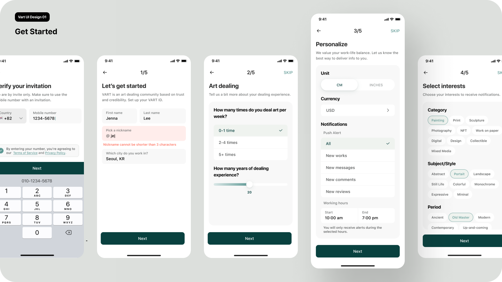 UX design for the art dealing platform "VART".