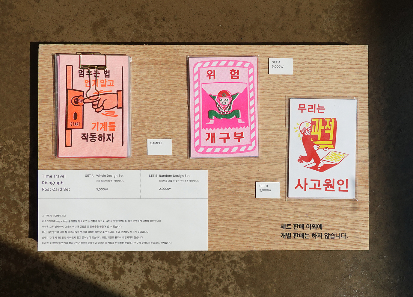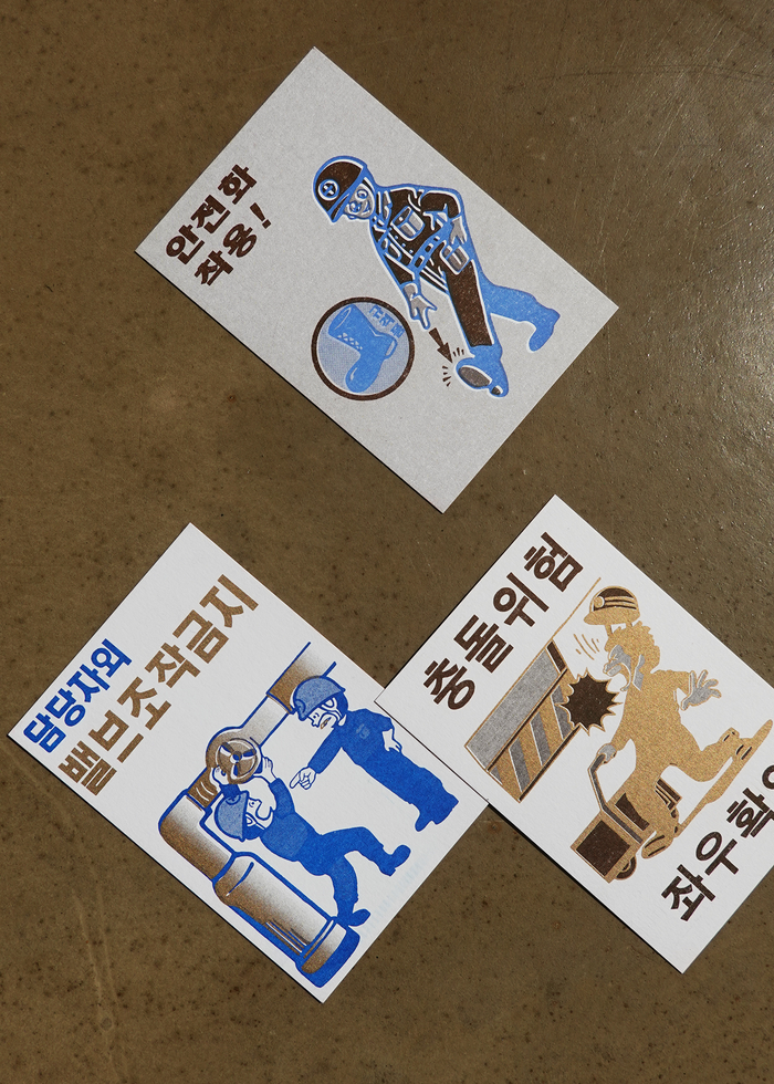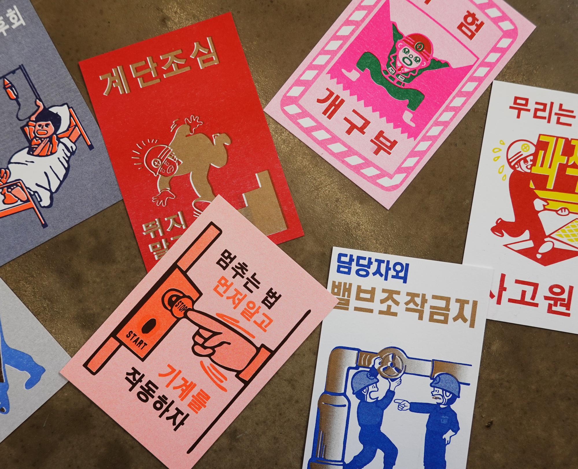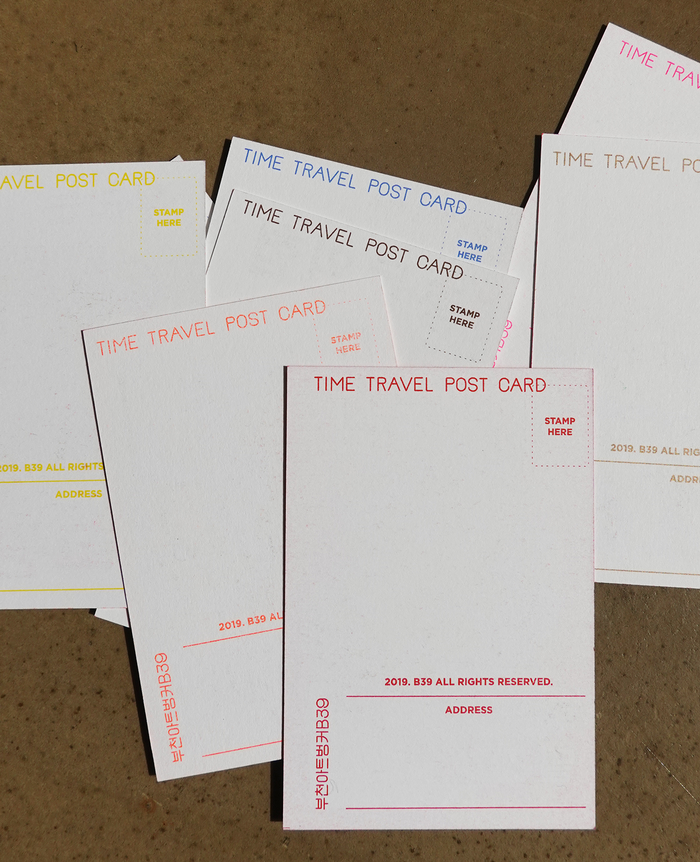 Riso Postcards reinterpreted from archival posters within the Bucheon Art Bunker B39 space.