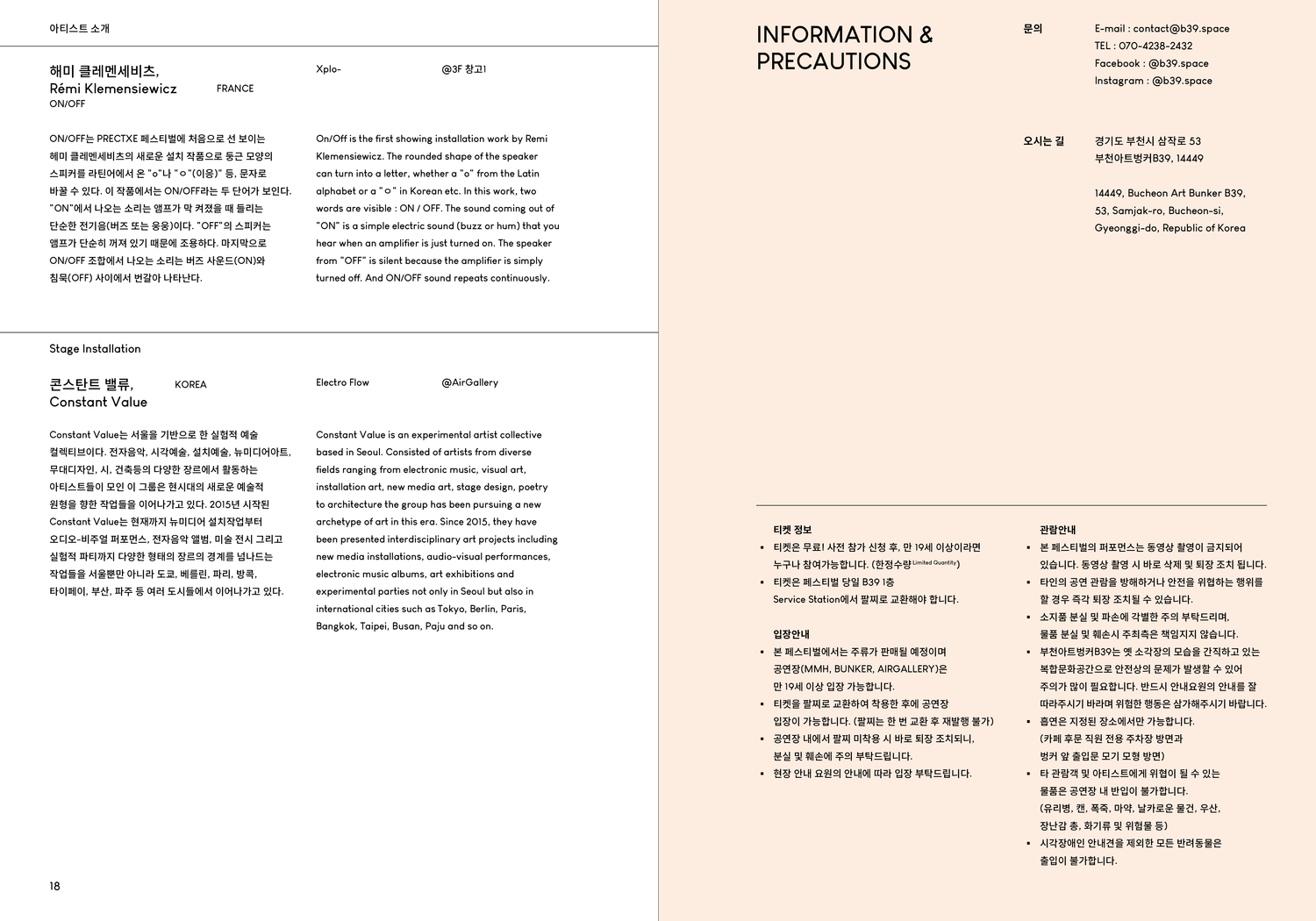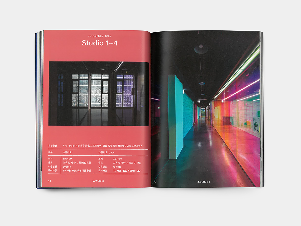Visitor guide for B39, a cultural space in Bucheon — editorial design that navigates space through print.