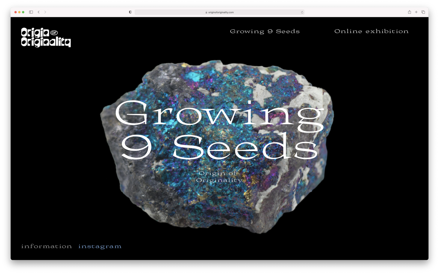 Website design for an online exhibition exploring origins.