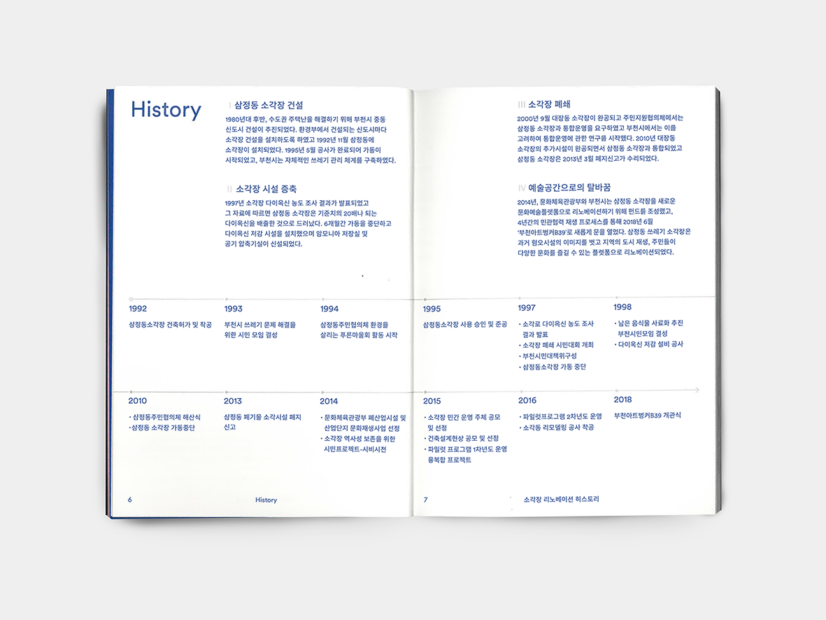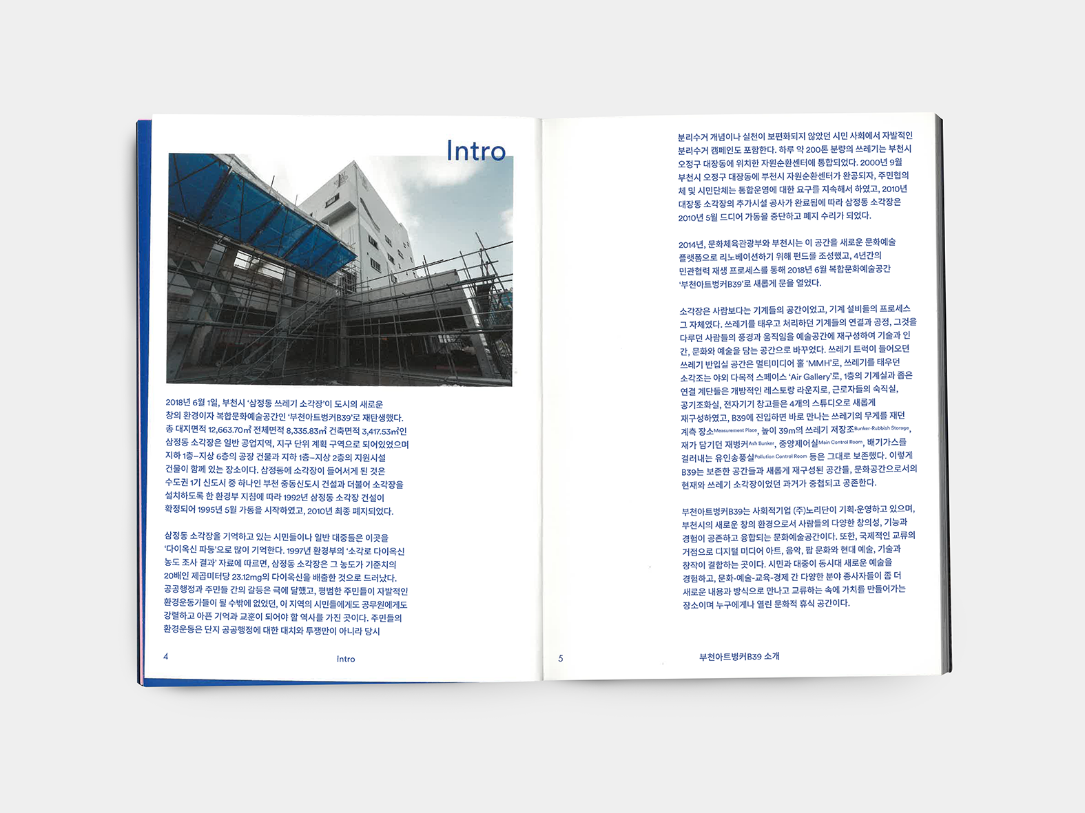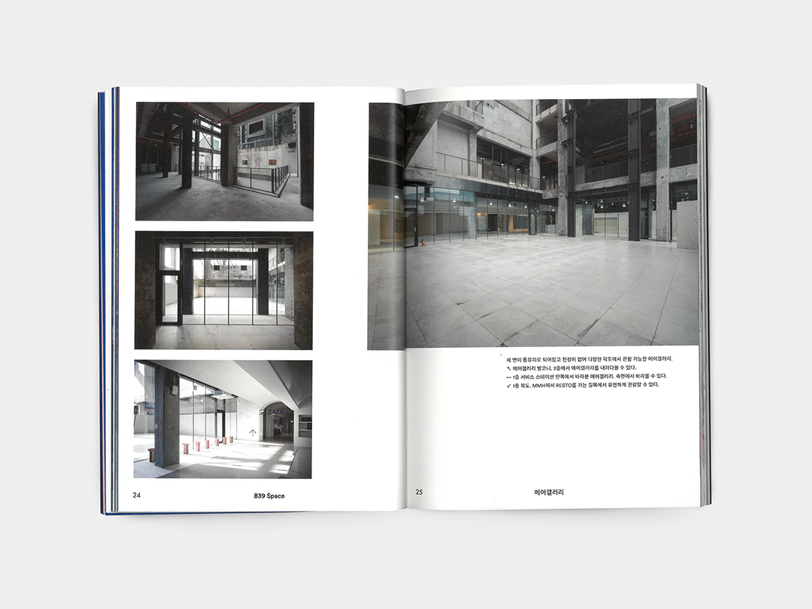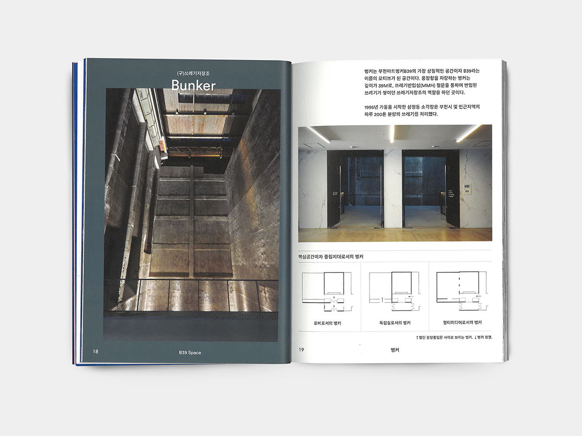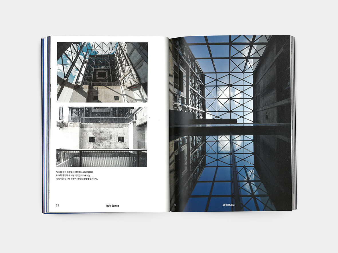 A printed spacebook documenting B39 — an industrial heritage site turned cultural venue in Bucheon.